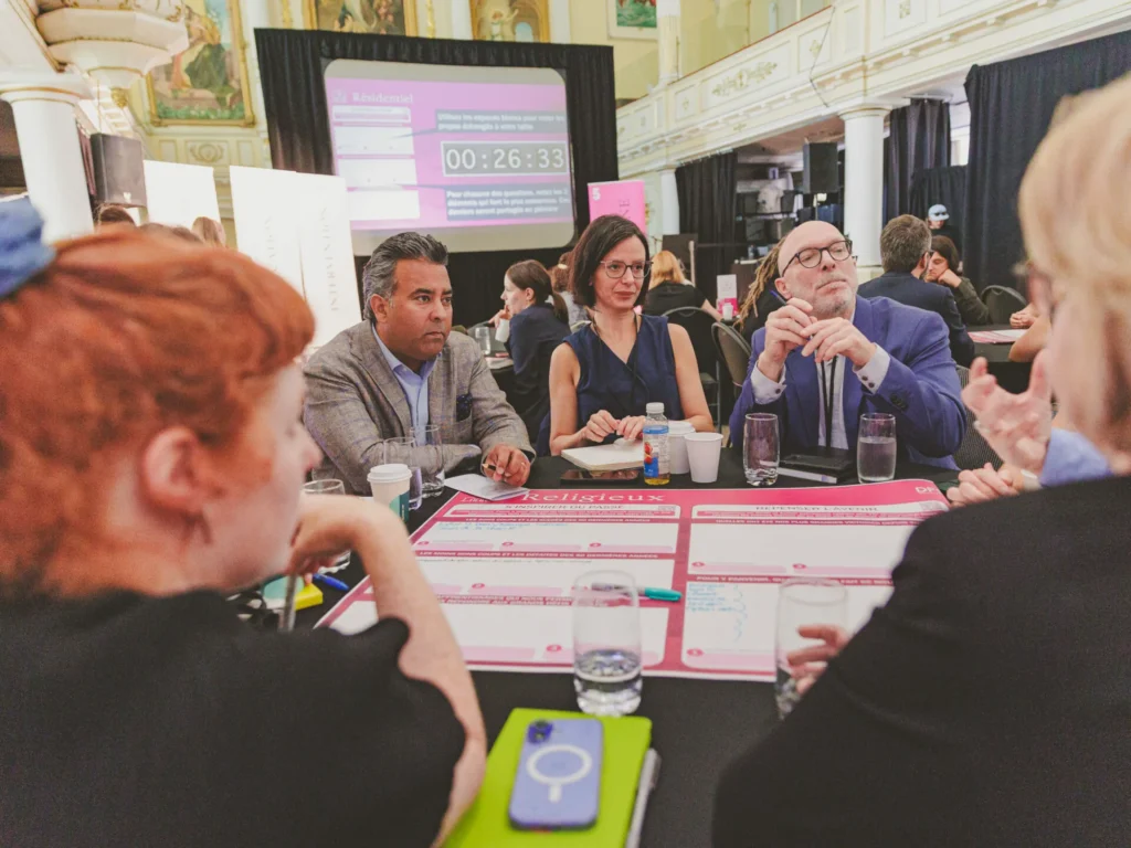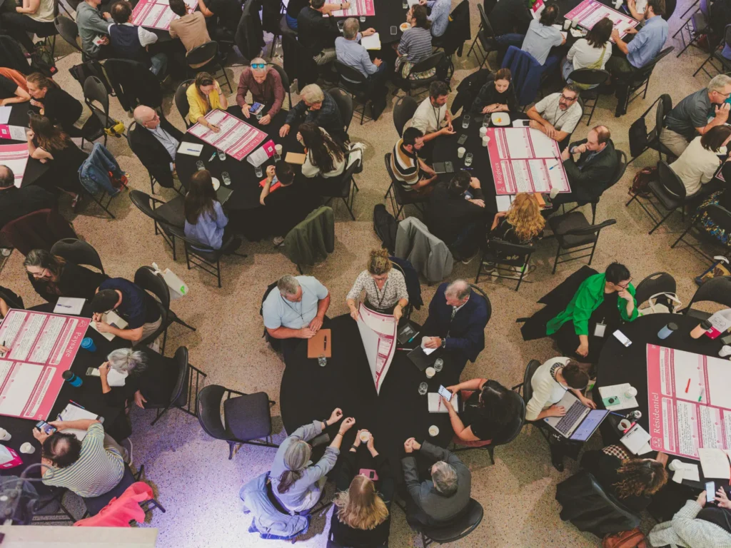Afin de poser les bases des réflexions, la journée s’est articulée autour de courtes présentations d’intervenant(e)s du milieu du patrimoine bâti et des paysages, portant notamment sur les thèmes suivants : le financement alternatif, l’éducation, la mobilisation citoyenne et la transition écologique. Ces présentations ont été suivies d’ateliers participatifs. La journée a été animée par En mode solutions, une firme spécialisée en stratégies collaboratives. Cette approche dynamique a permis de travailler ensemble à une vision commune de notre patrimoine.