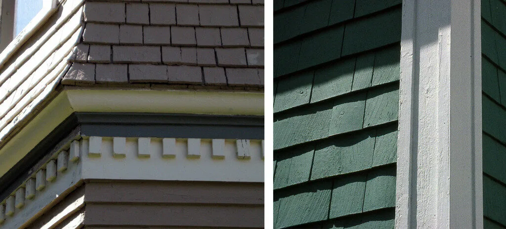 - Utiliser des photos anciennes permettant d’illustrer l’apparence qu’avait le bâtiment à d’autres époques. Les propriétaires peuvent ainsi retracer l’évolution du bâtiment et identifier ses matériaux d’origine. Les photos pourront également laisser entrevoir la présence sous-jacente d’éléments significatifs et de détails caractéristiques perdus au moment de l’installation du revêtement de vinyle ou d’aluminium;